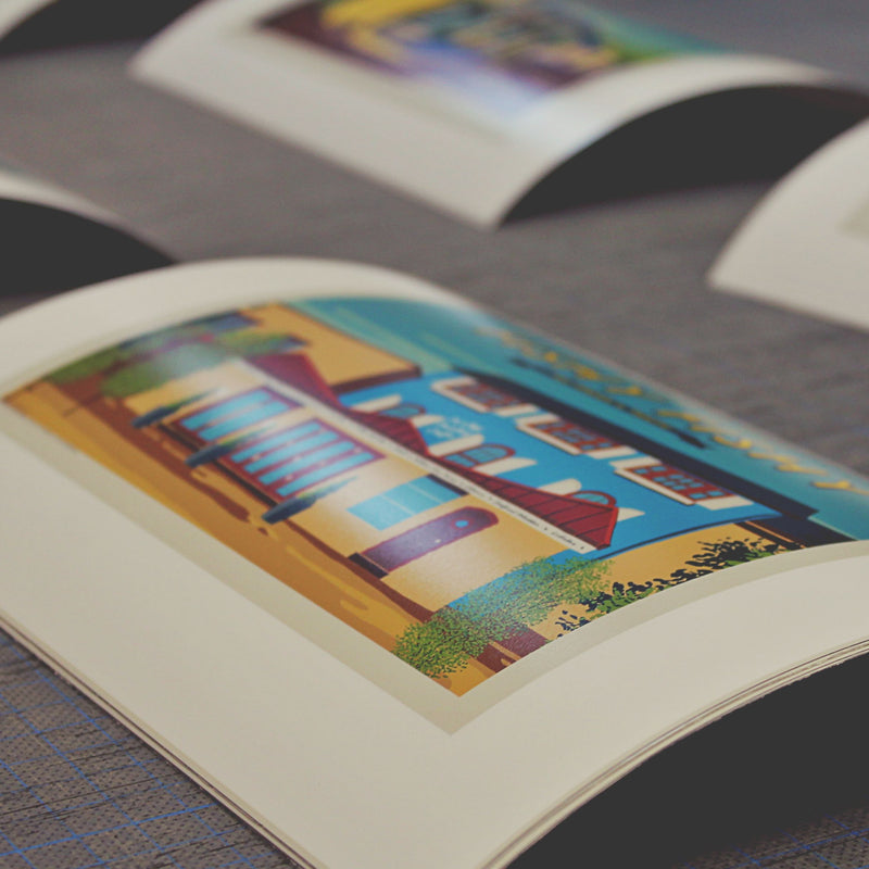 Our Irish travel poster design process begings with image origination. We'll either take photos or source images online which we use as the base for our illustrations. We typically use Gills Sans as the typeface and will then devise the ribbon text and other smaller copy details. Typically the entire travel poster design process can take 3-4 weeks. Most of our designs mirror the vertical poster format of the original screen printed travel posters. All our travel posters are printed in our Kinsale gallery.