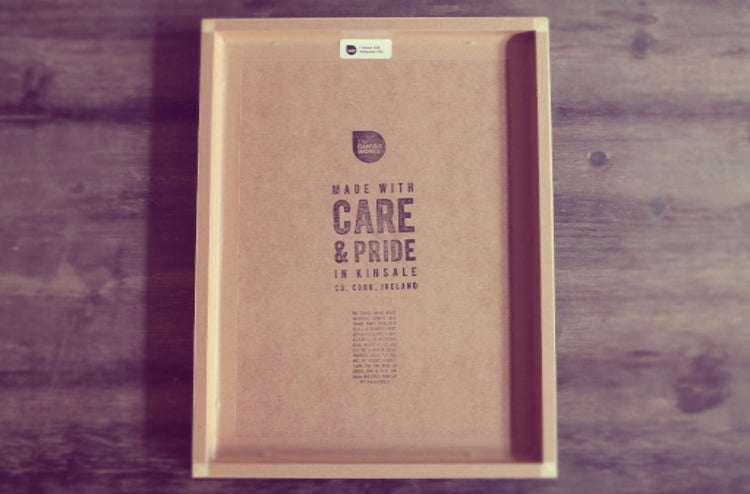 All our posters and framed prints are finished by hand in our gallery in Kinsale. Framed prints are carefully finished on the reverse with tape and include hanging brackets. They are carefully wrapped before being boxed up and despatched with An Post.